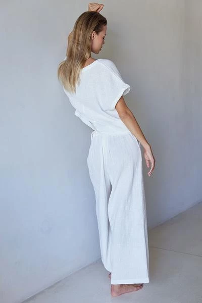 Wide-legged pants will always look effortlessly put together. Case in point: our Retreat Pants. Designed with maximum comfort in mind, every pair exudes subdued elegance with its oversized shape, wide-leg silhouette, functional pockets, and a white Boho-inspired tassel belt.
