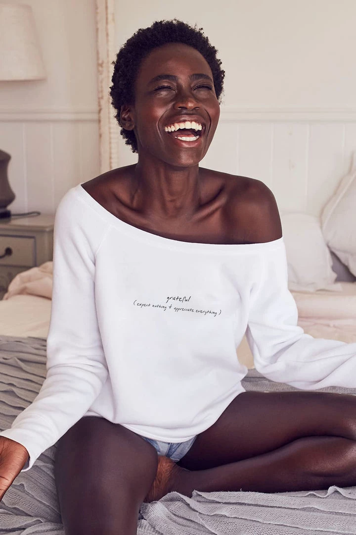 Our best-selling pullover is made from a super-soft poly-cotton blend, designed with a flattering wide neckline and an oversized look.