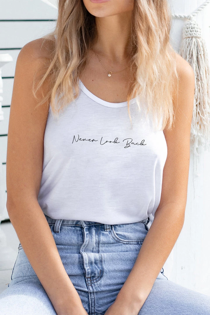 Be the first to review “Om & Ah London – US “Never Look Back” Flowy Tank” Cancel reply