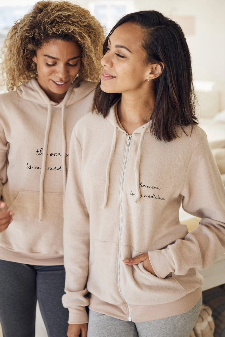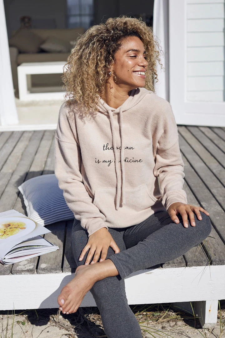 This sueded fleece hoodie has been a long time coming! We think it’s perfect for the beach, a cool evening out on the town, or even just lounging around in your favourite spot at home.
