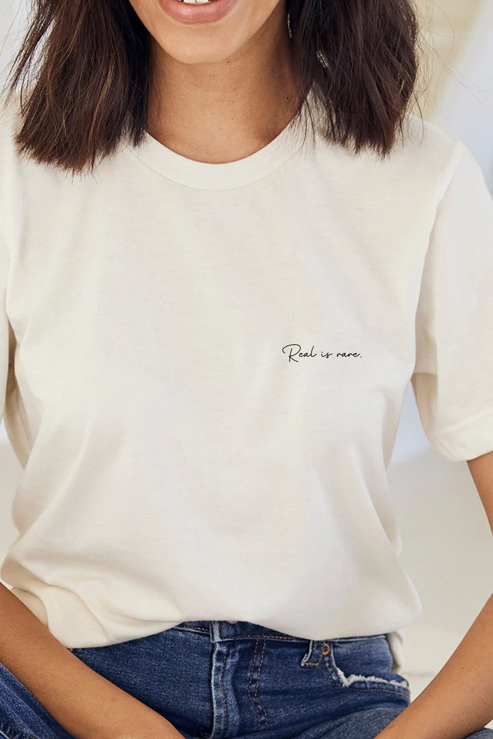 SKU: 3301c-6908871639088 Categories: NEW ARRIVALS, Short Sleeve Tees, WOMENS Tags: Cloud, Real is rare, Short sleeve, Short sleeve tee, T-shirt, Tee, White, Wholesale